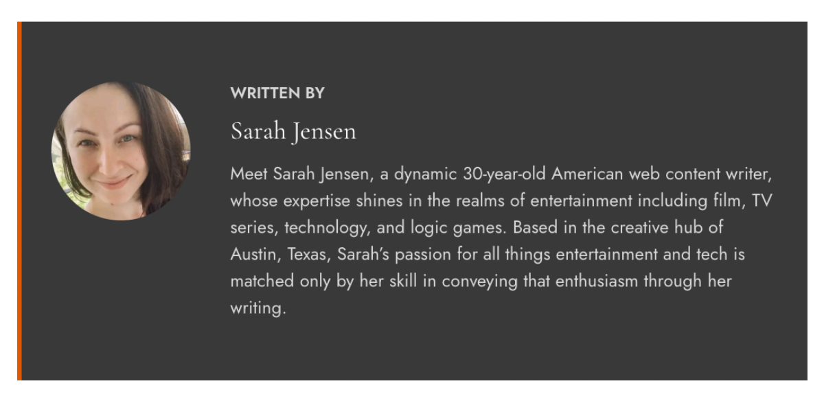 “Based in the creative hub of Austin, Texas,” the lengthy byline continues. “Sarah’s passion for all things entertainment and tech is matched only by her skill in conveying that enthusiasm through her writing.” Reverse image searches for Jensen’s associated headshot, meanwhile, failed to return any matches, suggesting the use of AI. (We did find a few Sarah Jensens with varying histories in publishing, but none that came close to matching this Jensen’s description.)