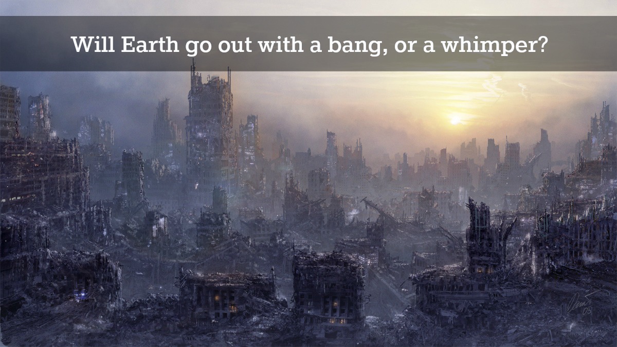 2) The eruption of a supervolcano, a meteor impact, or other serious natural disaster could make life on Earth impossible (or, at least, very difficult).