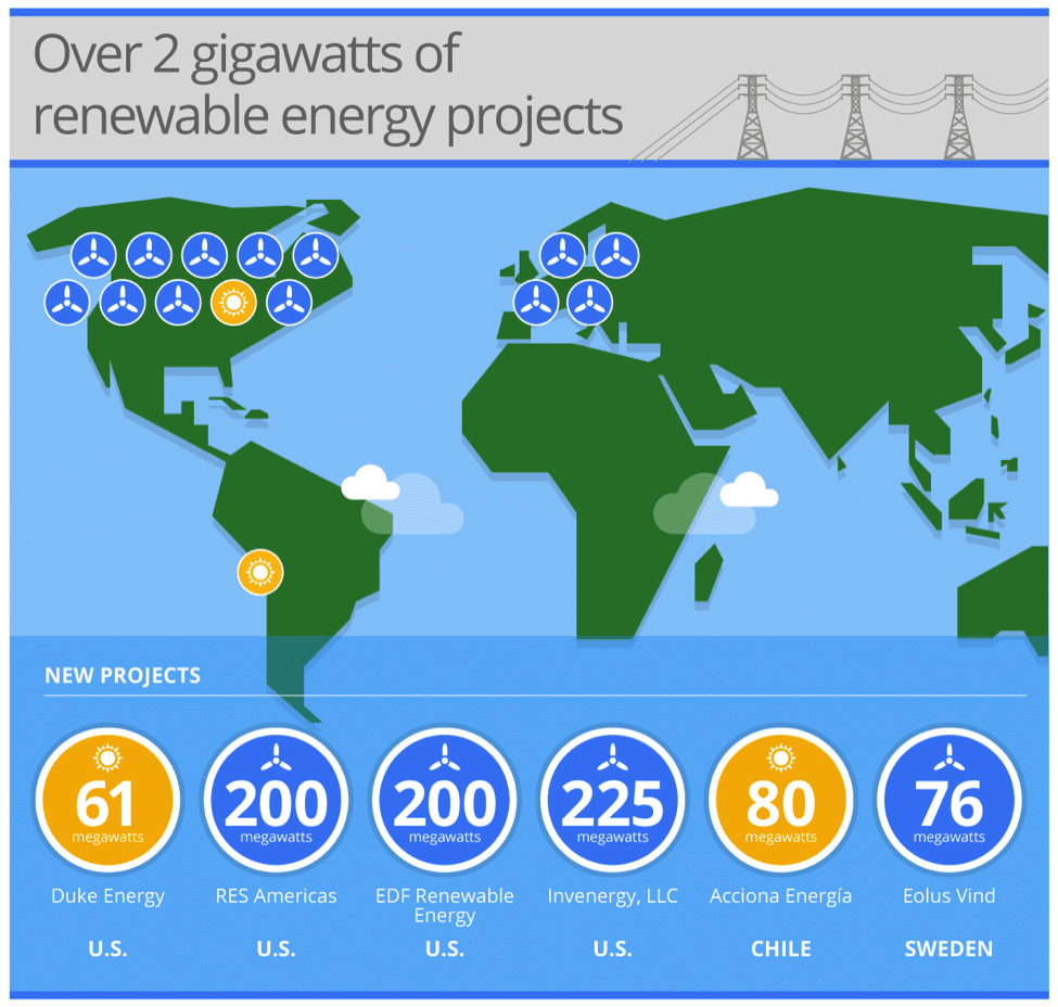 Google’s most recent purchase now makes them the largest non-utility renewable energy purchaser in the world. They’ve also invested more than $2.5 billion in renewable energy projects globally.
