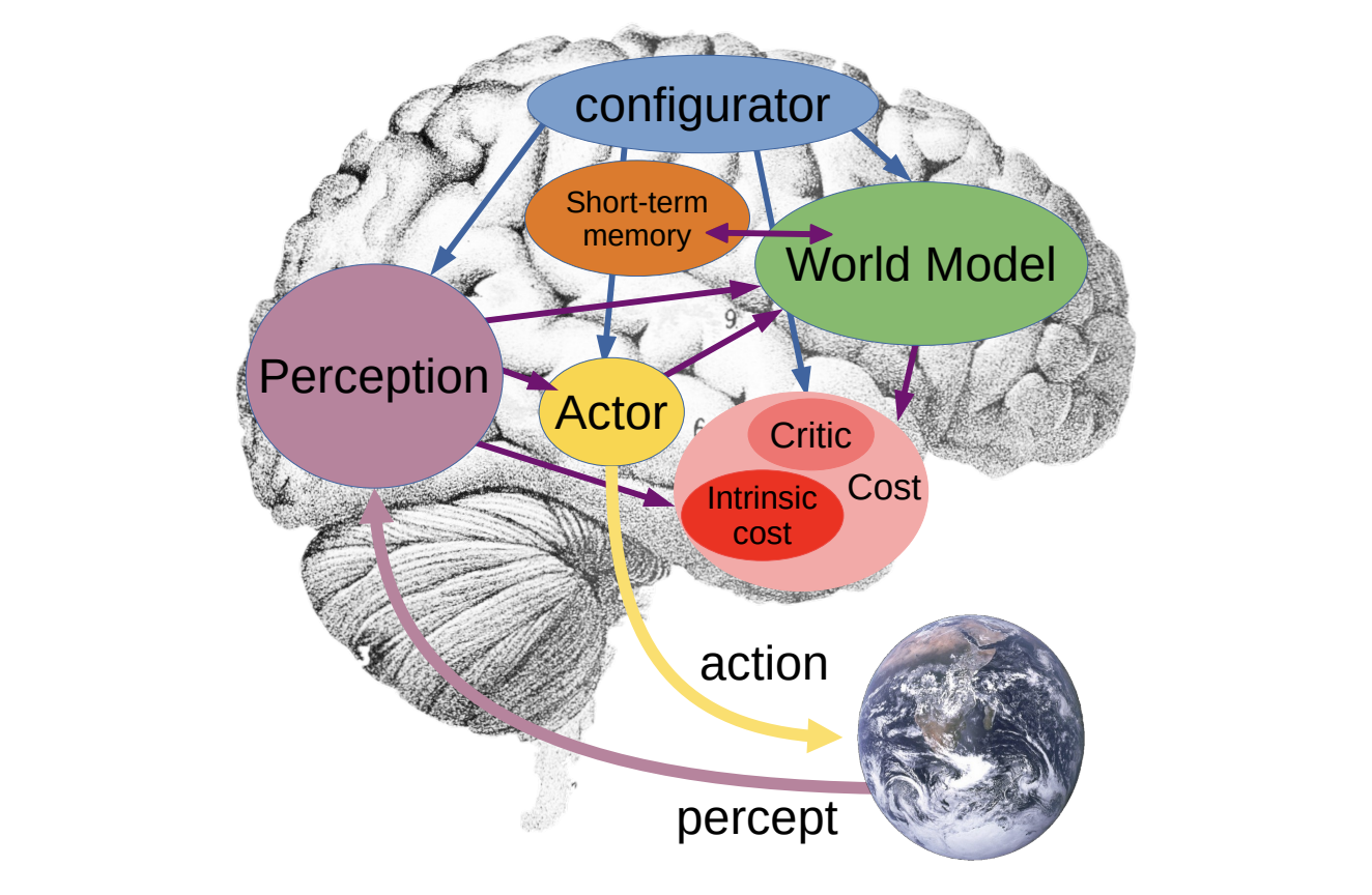 Because he’s a scientist, the Meta AI chief’s next generation algorithm-training architecture involves a bunch of moving parts such as a system that replicates short-term memory, another that teaches neural networks self-criticism, and the establishment of a “configurator” module that synthesizes all inputs into useful information. Here’s his diagram: