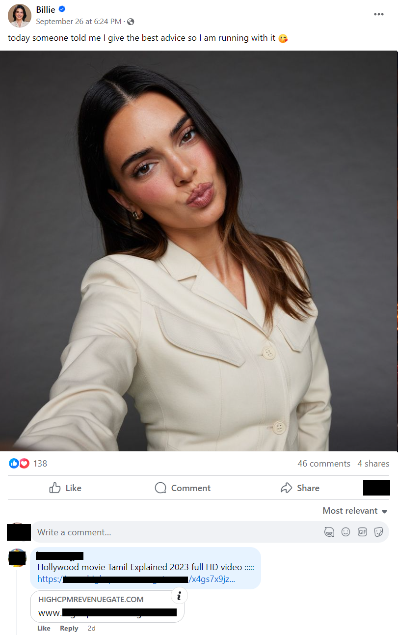 It’s not just Zombie Austen, by the way. Here’s spam on “Billie,” the company’s bot based on Kendall Jenner: