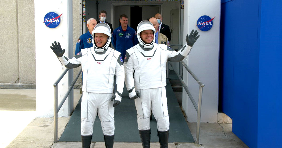 The Elon Musk-led space company put on a big show. Clad in futuristic space suits courtesy of SpaceX, NASA astronauts Bob Behnken and Doug Hurley got the red carpet treatment as they made their way to a NASA logo-adorned Tesla Model X that drove them to the historic launch complex 39A at the Kennedy Space Center in Florida.