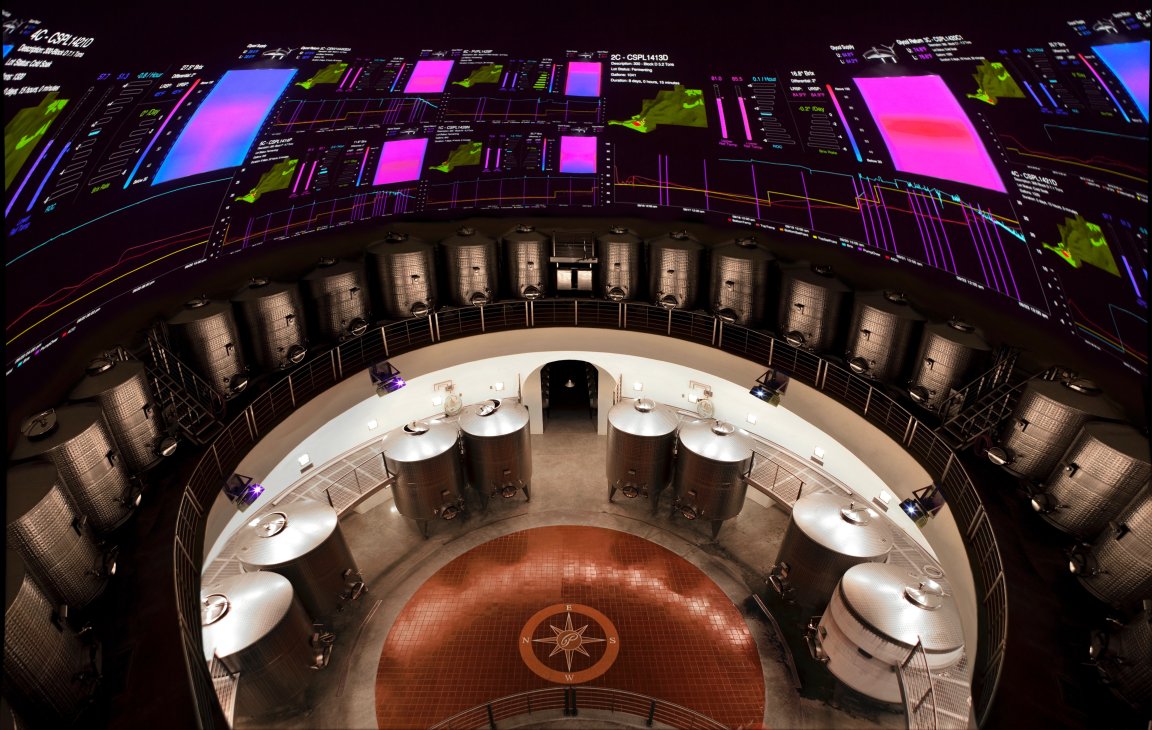 The winery has created the FILCS (Fermentation Intelligent Logic Control System), a 240-foot tall, five level complex. Each of the 24 fermentation vessels is equipped with a probe that uses small vibrations to occasionally measure the density of the liquid, revealing the temperature, sugar content, and alcohol level of the brew. That kind of information helps winemakers bring lab-grade consistency to winemaking, resulting in a predictable, delicious final product. That’s more economical, too, because winemakers won’t lose a batch to some unexpected aftertaste, and customers might keep buying a product that they can trust will be consistently high-quality.