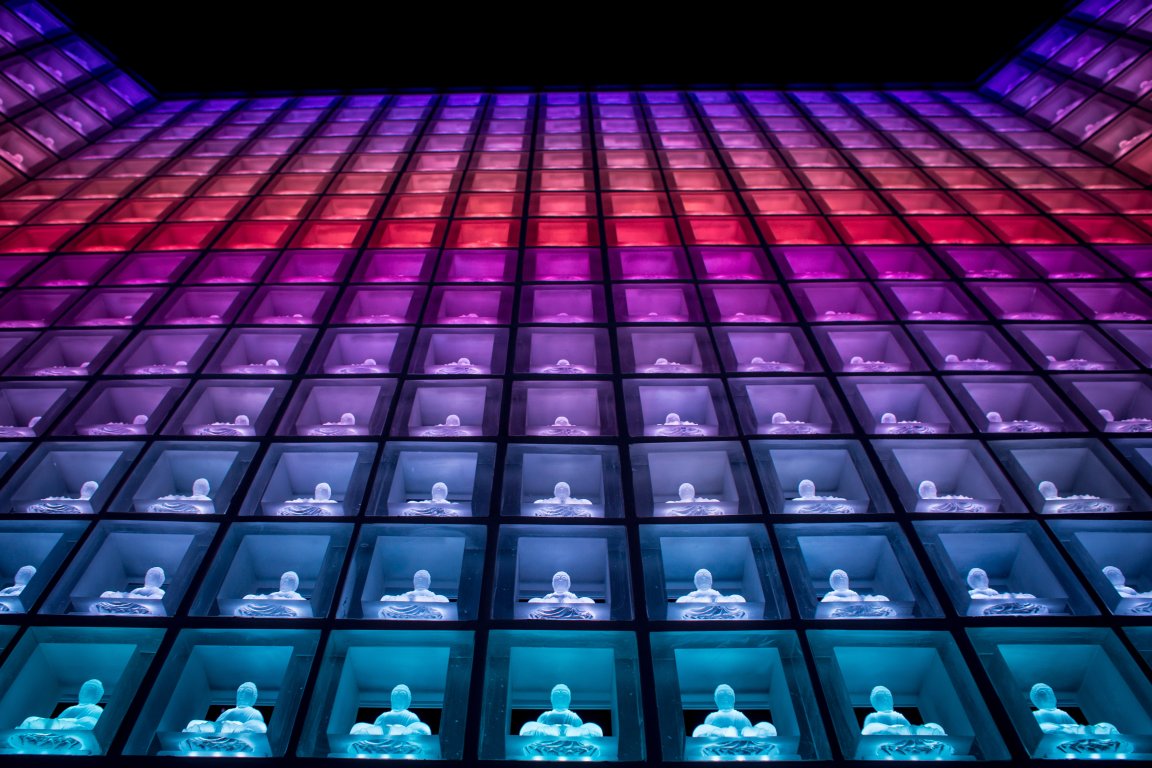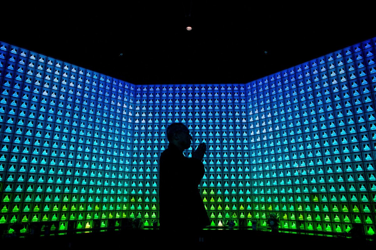 As reported by Motherboard, there are more than 2,000 of these statues lining a massive wall in the space. Directly behind it, lockers house the actual human remains. With the help of a smart card system, visitors can store information about their deceased loved one, and make their representative Buddha statue light up like your childhood Sketchers.