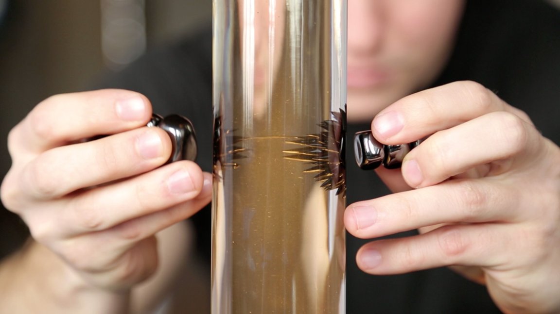 A ferrofluid is, quite simply, a fluid with magnetic particles in it. This means that, if the fluid is exposed to a magnetic field, it does some pretty awesome stuff. In short, all of the magnetic particles will align with the field lines, forming some amazing, symmetrical shapes.