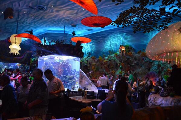 Monday afternoon, (March 17, 2014) a giant fish tank at the T-Rex Cafe in Orlando’s Downtown Disney area cracked open. In the image, you can see that many of the diners were more concerned about filming the event than they were rescuing the fish or seeing what they could do to assist. Fortunately, quick thinking employees rushed in to save the creatures that were housed in the tank, and they herded diners away from the gushing water.