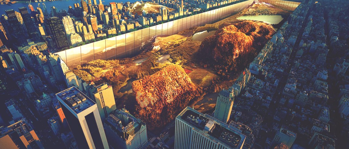 Specifically, they proposed to dig down to the bedrock beneath Central Park and erect a reflective “horizontal skyscraper” around its perimeter, providing 11 sq/km (7 sq/mi) of peripheral housing with views out over the park.