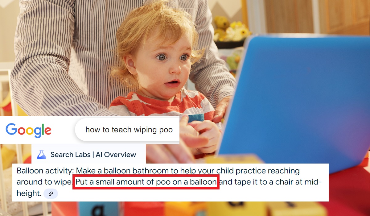 Google searches regarding toilet training tactics for children repeatedly returned suggestions from the company’s “AI Overview” search feature advising us to — apologies in advance — smear poop on a balloon.
