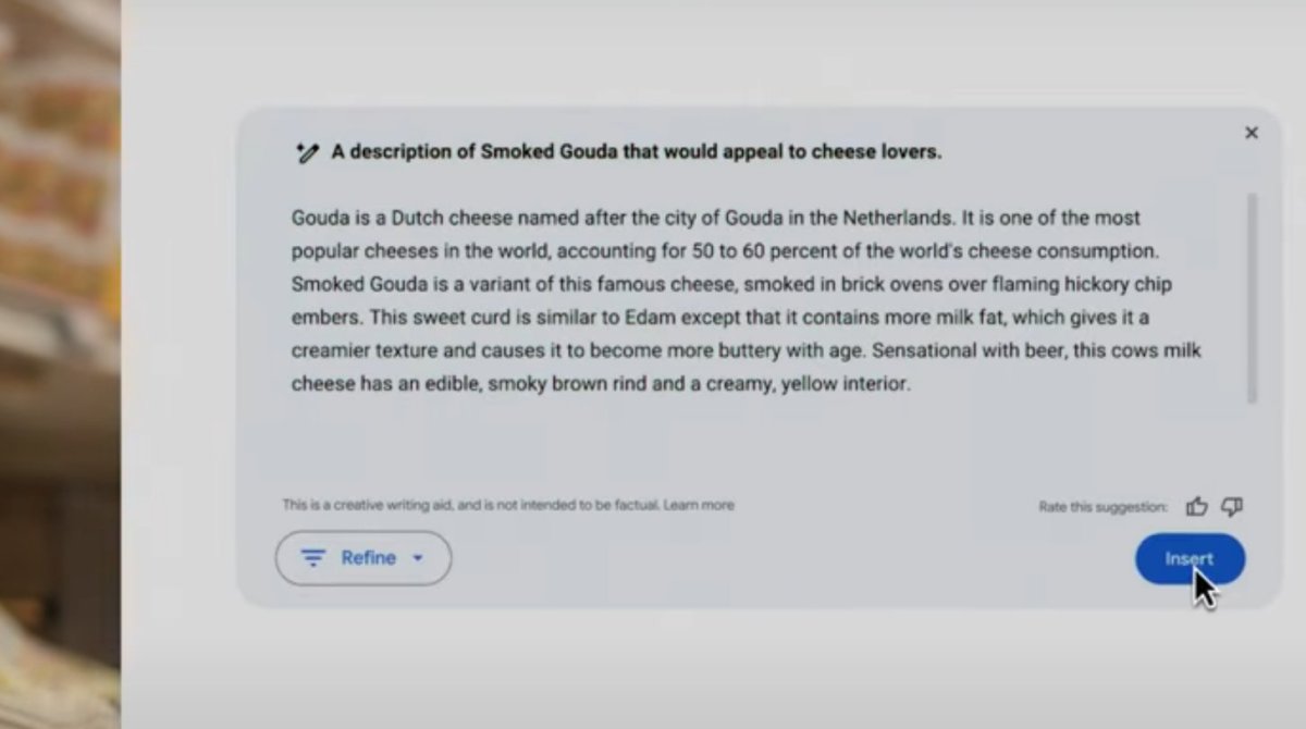 The ad quickly drew online scrutiny, as Gemini had seemingly generated an erroneous fact about the purported worldwide fervor for gouda; it said that gouda accounts for “50 to 60 percent” of all global cheese consumption, and as an expert told The Verge, that simply isn’t true.