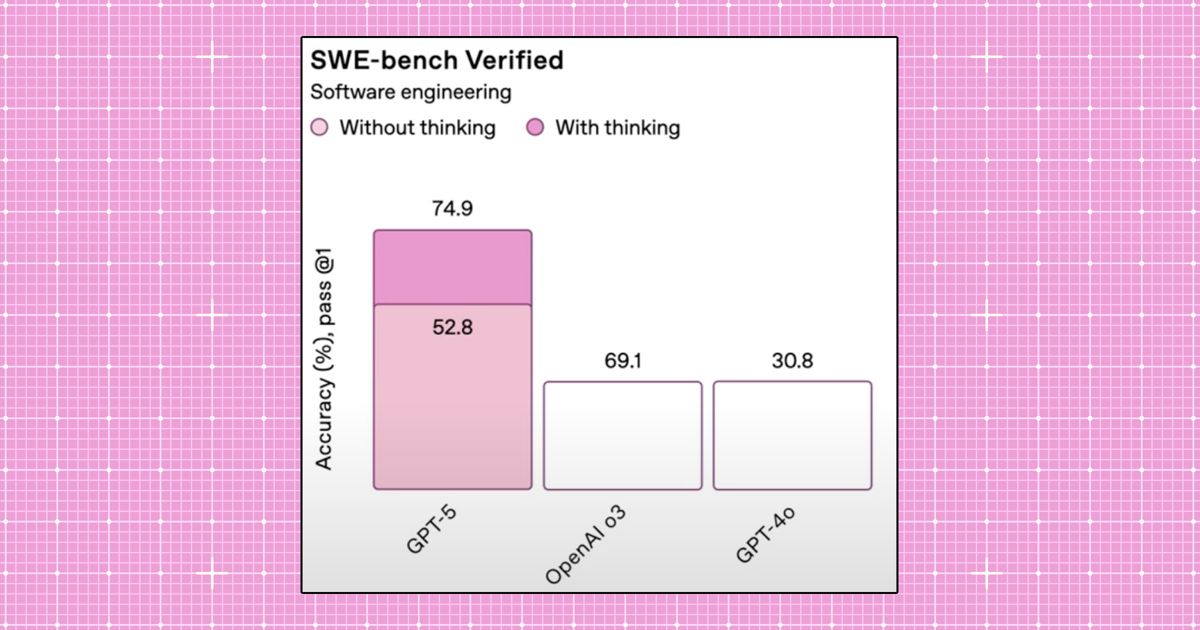 The gaffes were flagged on social media and highlighted by The Verge. The most egregious example is a bar graph comparing coding benchmark scores for GPT-5 compared to older models. Somehow, the bar for GPT-5’s score of 52.8 percent accuracy is nearly twice as tall as the bar for a score of 69.1 percent for the o3 model. Even more bafflingly, the 69.1 percent bar is the exact same size as another bar representing 30.8 percent for GPT-4o. Make it make sense!