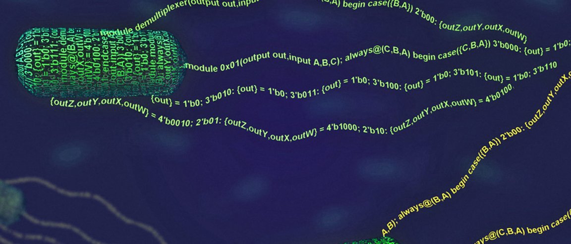 The designers based their language on Verilog, a popular coding language for programming computer chips. The key to making the whole thing work was tailoring the language to the complex conditions within cells; they had to make computing elements like logic gates that could be slipped into a bacterial genome.