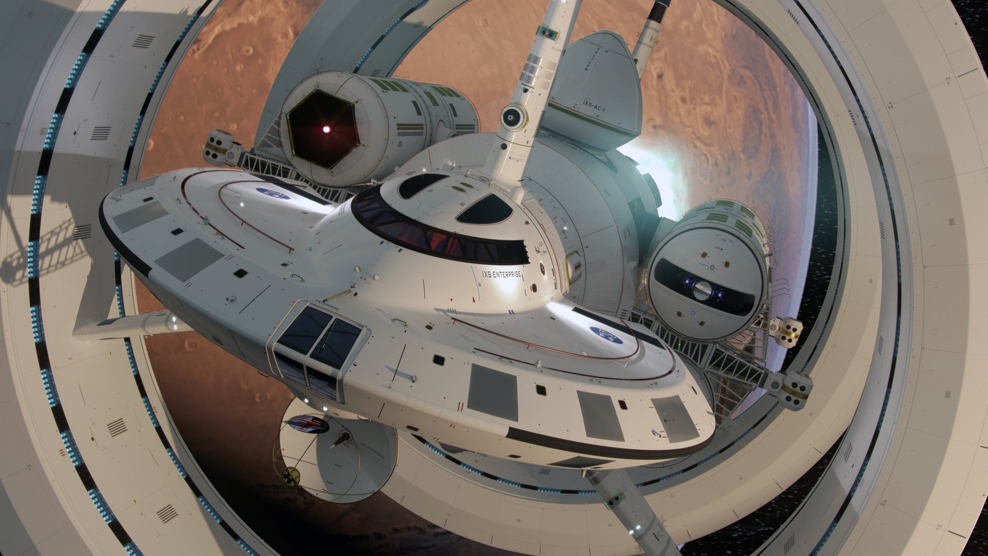 NASA designed its own Star Trek-like space warping ship in 2016 that shares a lot of similarities with the USS Enterprise. Ship designer Mark Rademaker’s goal was to “motivate young people to pursue a STEM career,” he told The Washington Post. Rather than relying on nuclear fusion or antimatter reactions, the IXS Enterprise takes advantage of a warp drive that, according to io9, would expand “empty space behind a starship […] pushing the craft in a forward direction.” The large rings around the spacecraft serve to form a “warp bubble” to reduce the energy requirements for the warp drive.