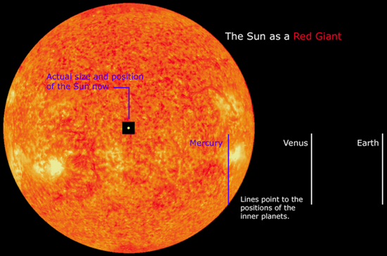 If nothing catastrophic comes along to change things (like substantially increased anthropogenic global warming, a major impact event etc.), in a few billion years, our planet will begin to die. This process will be set into motion because our sun will be starting its death throes. As it does so, it will swell to far beyond its current size. It will transition into a Red Giant, and as it transforms, it will melt our glaciers and (eventually) boil our oceans. Of course, this transition will be not-so-fun times for any life left on our planet.
