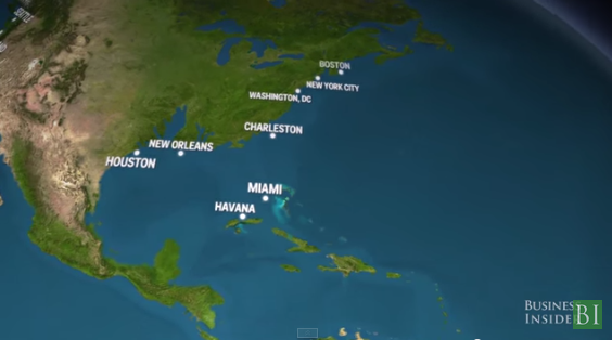 In any case, due to the way that nations develop, a number of people are living in mammoth sized coastal cities. And as the Business Insider simulation shows, those cities will be wiped from the Earth—New York, Boston, Huston, Beijing, Shanghai, Dakar, Tripoli…all of these will, one day, be underwater. Take a look at the view below for a pretty awesome rendition of what this might look like.