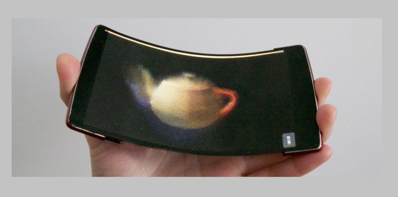 The Holoflex uses a layer of microlenses that disperse light in multiple directions. The display is flexible and may be bent to command the phone to let people interact with the object onscreen in a three-dimensional fashion.