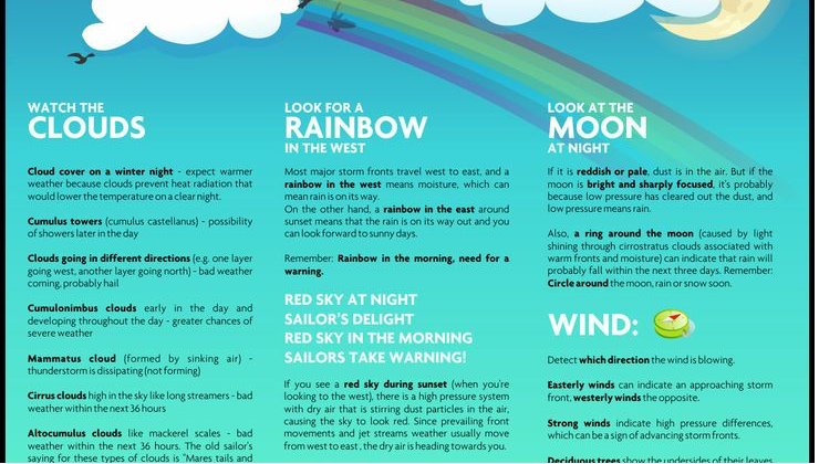 If you live in the Northern hemisphere, chances are, predicting the weather is absurdly easy right now. Since it is the middle of winter, you are likely getting snow, snow, and just for a change of pace, water that has turned in to snow. But spring and summer will roll around again, and if you are wondering if it is a good day for a picnic, or maybe if you’d be better off just staying in doors, here is a handy guide to help you predict the weather without using any technology.