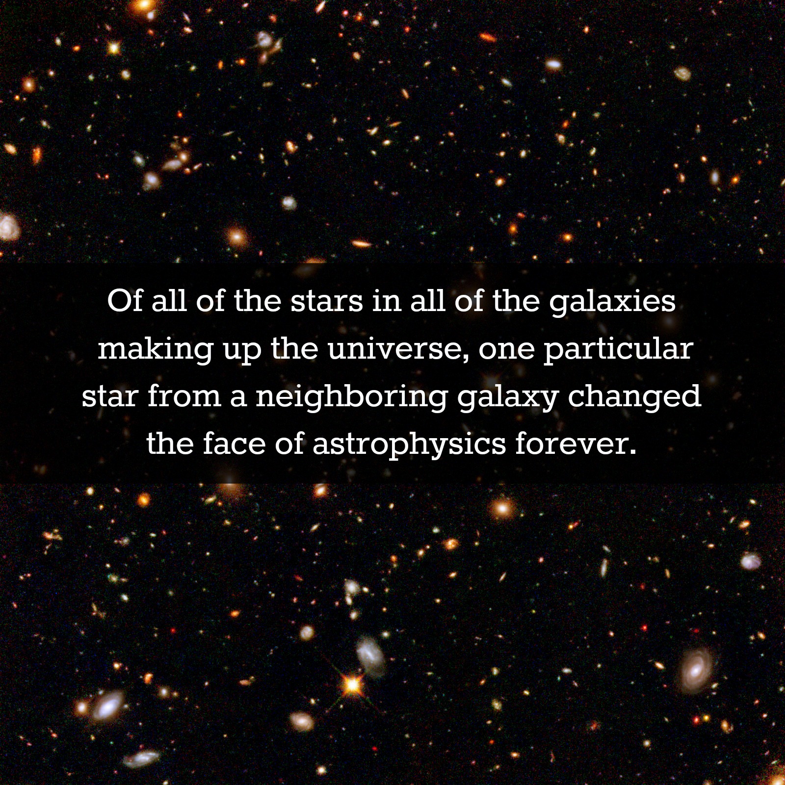 Hubble spent months during 1923 studying Andromeda using a 100-inch Hooker telescope. Using many exposures and glass plates, he tried to capture the whole nebula. On October the 5th, Hubble was capturing images of one of the spiral arms, the next day he took a second photo and compared the two. He found 3 possible supernovae, one of which dimmed and brightened in a much shorter period than expected.