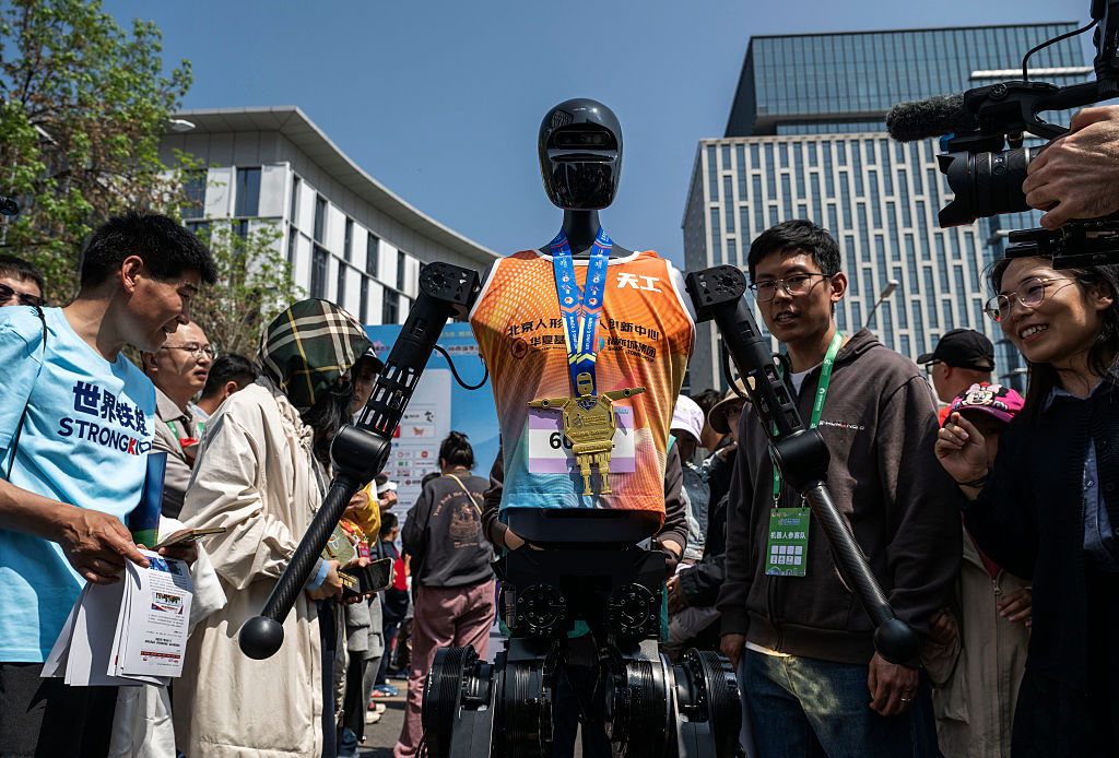 A half marathon foot race in Beijing, China, saw thousands of humanoid robots of various sizes running right alongside their flesh-and-blood counterparts for an attempt to take the crown.
