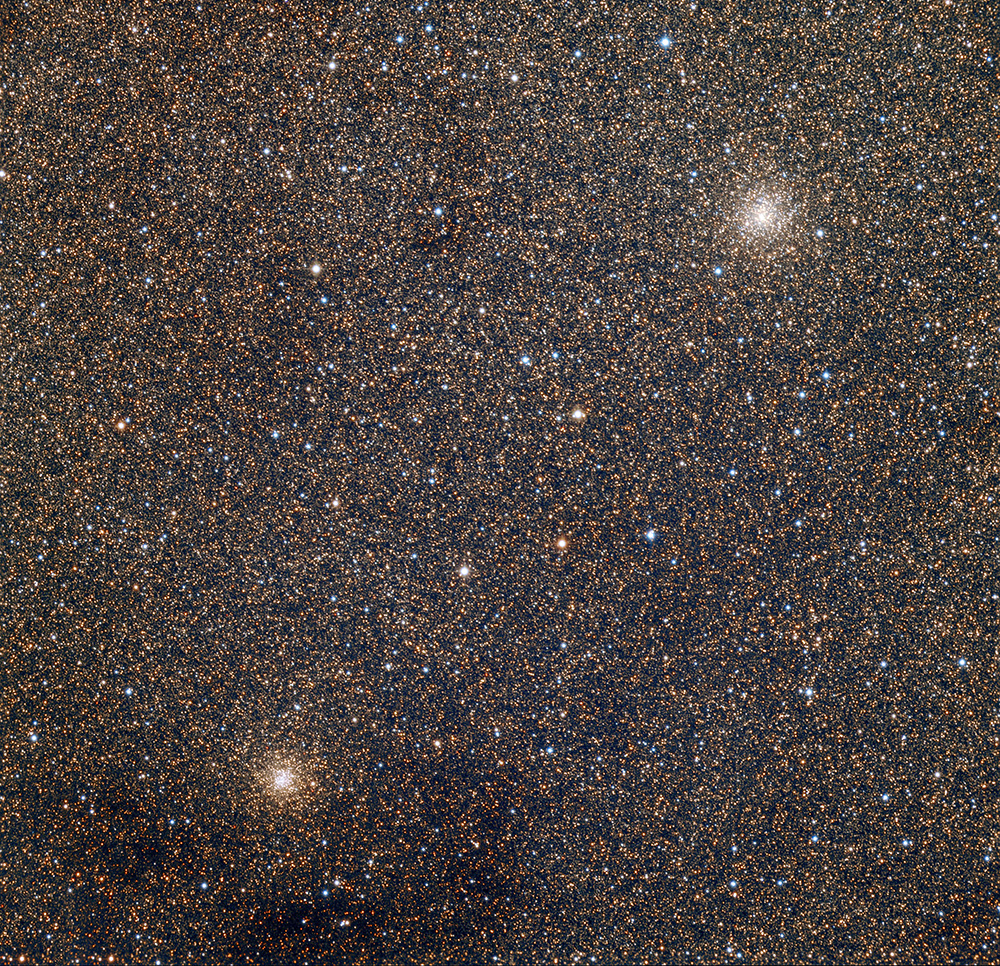 This star field shows NGC 6522 (to the right), which is potentially the oldest globular cluster in the Milky Way, and NGC 6528 (to the upper left). This picture contains many millions of stars, and it gives us some idea of what the night sky might look like if our universe was far, far older (or if we didn’t have to contend with so much light pollution).