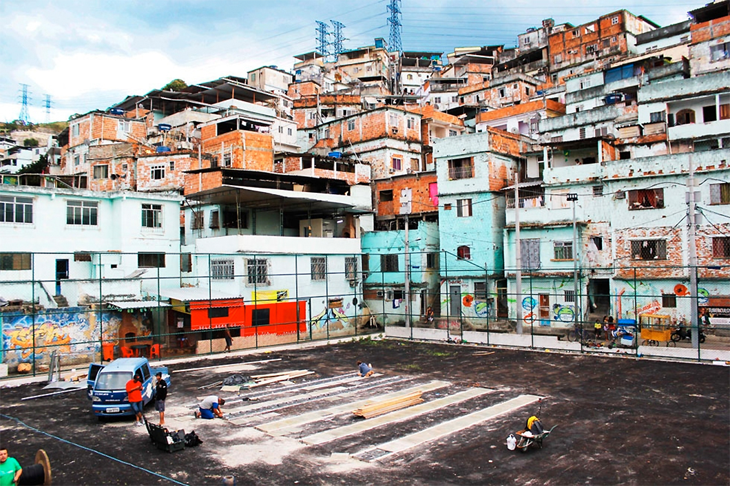 To that end, Pavegen partnered with the Shell LiveWIRE program to see if they could use their tiles to transform the lives of people living in Morro da Mineira, a Brazilian favela plagued by violence and poverty. Through the partnership, the company rebuilt the favela’s dilapidated soccer field. “We installed 200 of our tiles in this pitch, and we used the energy from people playing soccer to illuminate it,” explains Kemball-Cook.