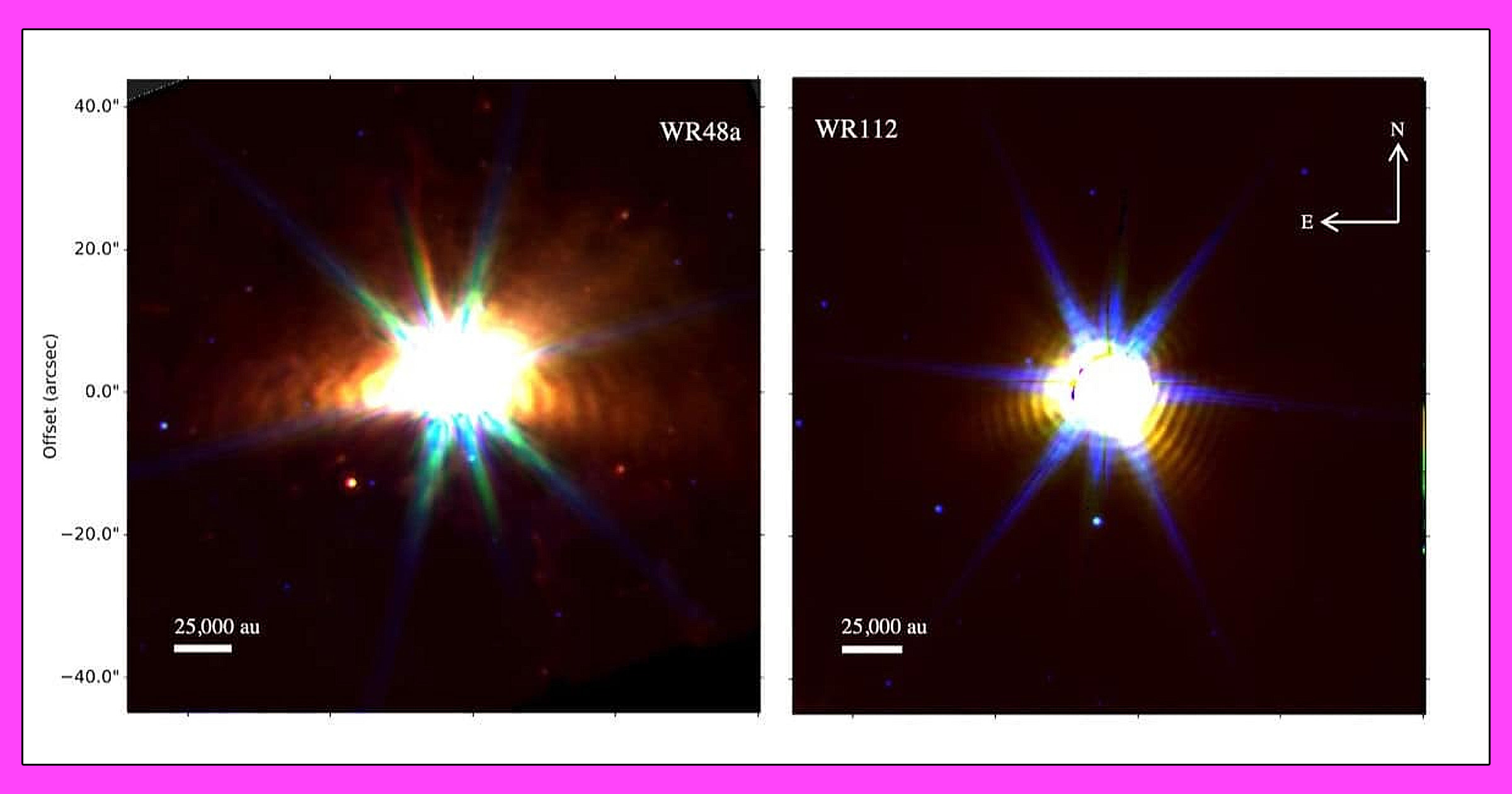 Known as Wolf-Rayet stars, which were discovered nearly 160 years ago by astronomers Charles Wolf and Georges Rayet at the Paris Observatory and named in their honor, these ancient stars are, as Space.com notes, surrounded by a “shroud” of cosmic dust that will eventually explode outward and lay the foundations for new stars.