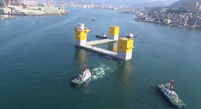 - The floating turbine is anchored to the seabed by four 20-ton anchors. If a large wave were to jostle the floating wind turbine, the loose chains have enough slack to move without damaging the wind turbine.
