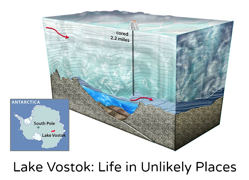 The lake is the perfect place for the study of extremophilic microbial life (and possibly larger organisms) and evolutionary isolation. This inhospitable environment parallels some environments that we think might exist elsewhere in the solar system–places like the subsurface of Mars and icy moons like Enceladus and Europa. Ultimately, the search for life on other planets could start here on Earth – at Lake Vostok.