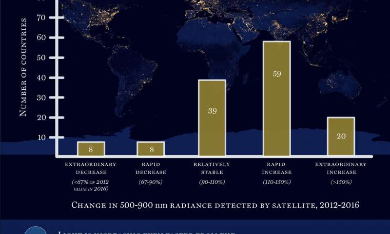LED light bulbs are causing a global problem, researchers concluded, reporting that light pollution was increasing in 79 countries compared to only 16 countries in which it was decreasing. In 39 countries, light pollution remained stable during the study.