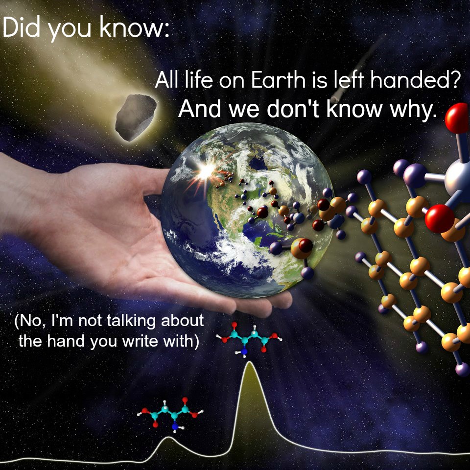 Of course, from here the objects in the solar system formed with a bias to left-handed amino acids. When these objects delivered their precious organic materials to Earth, life had more left-handed amino acids to work with than right-handed ones thus explaining why we are all lefties.