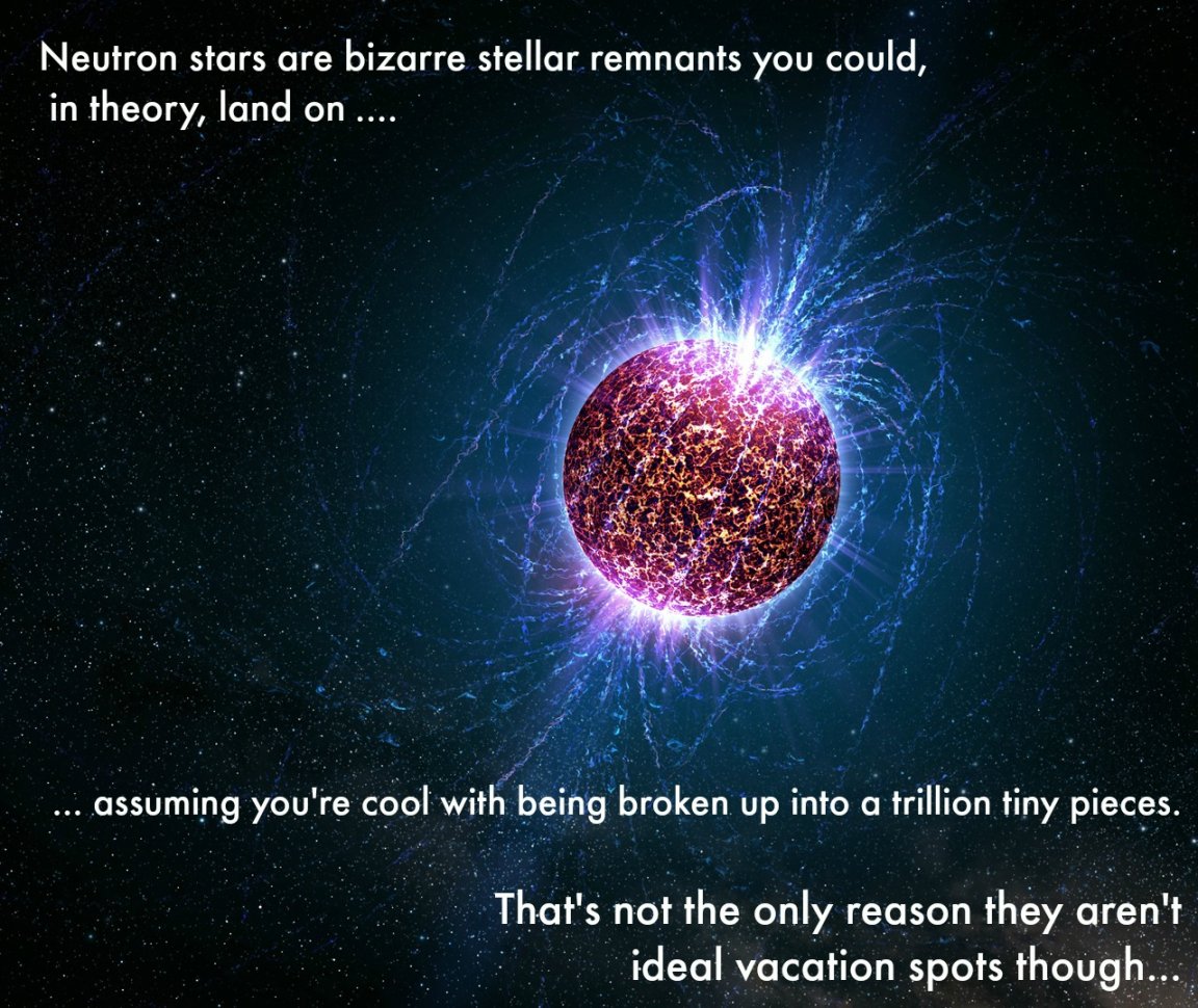 So only plan on spending a day on a neutron star if you have super great time management skills; by the time you landed, you’d have to leave as your day would be over.