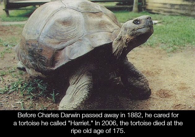 To many individuals, 80 years might seem like a decent bit of time (it’s sure better than the mere 30 years given to people who lived prior to the 20th century); but it’s barely a blip when compared with some of the other inhabitants of Earth. Take, for example, Harriet (pictured on the left) This giant tortoise died in an Australian Zoo in 2006; she was over 175 years old (more than double the average life expectancy of modern humans). What’s more, it is believed that Harriet was one of the three tortoises taken from the Galapagos Islands by Charles Darwin on his historic 1835 voyage aboard the HMS Beagle. That’s right; researchers believe that Harriet was originally owned by Charles Darwin.