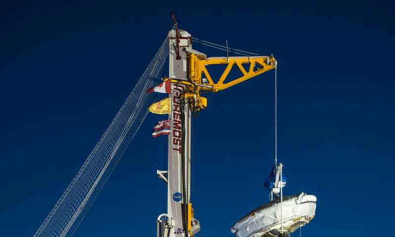 - Traveling at about three times the speed of sound, the vehicle’s inner-tube-shaped decelerator, called a supersonic inflatable aerodynamic decelerator, will inflate and slow the vehicle. Then, at Mach 2.35, its parachute will inflate and gently carry the vehicle to the ocean’s surface.