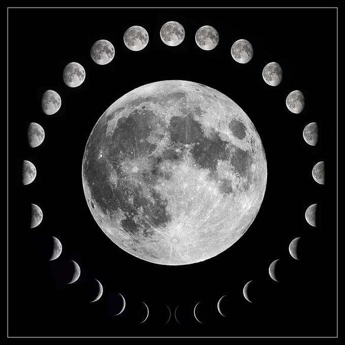 This incredible collage was taken by William Hood and it shows each of the 28 phases the moon goes through in its lunar cycle. William was fortunate enough to capture these images over the July-August 2004 lunar cycle completely uninterrupted by cloud cover. I think this is a brilliant opportunity to talk about lunar cycles and answer questions frequently asked question about them, such as ‘is it really possible to see a truly ‘full’ moon or ‘can we watch the moon move’.
