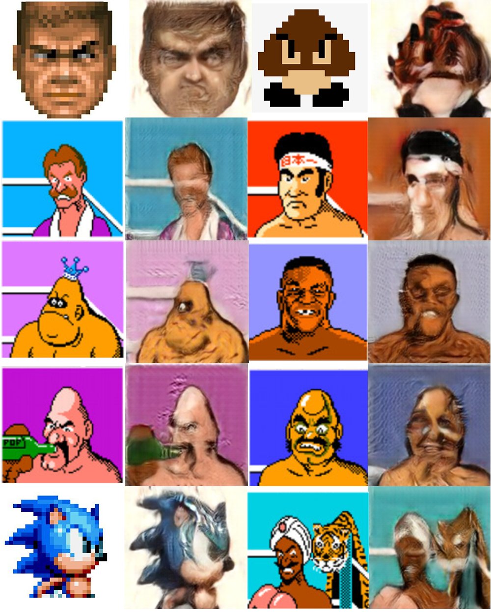 But all that went away when Fly pivoted to video game sprites — the algorithm turned a goomba into a swirling mess, and the characters from “Mike Tyson’s Punch-Out” were so mangled and distorted that they looked like they had all taken several beatings in a row.