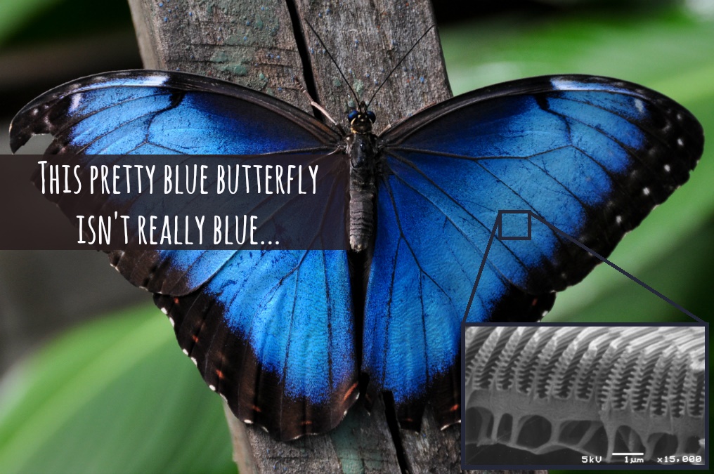 Traditionally, here on Earth, most color comes from pigments and how our eyes interact with them, not wavelengths of light. In short, pigments alter the “color” of light that we perceive because they absorb certain wavelengths. However, not all colors come from pigments. There are a few notable exceptions. Perhaps the most beautiful are Iridescent creatures, like the blue morpho butterfly. Naturally, this incredible creature’s name comes from its blue coloring, but to make a long explanation short, it’s not blue at all.. Not really, anyways. Rather, its hue comes from something called “structural coloring,” whereby color is the result of interactions between physical structures, light and our eyes (diffraction and dispersion vs reflection and absorption).