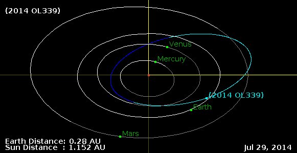 “The past and future orbital evolution of this object becomes difficult to predict although it remains in the neighbourhood of Earth’s co-orbital region for thousands of years. Asteroid 2014 OL339 was considerably more stable in the past. It may remain as a co-orbital to our planet switching between the various co-orbital states.”