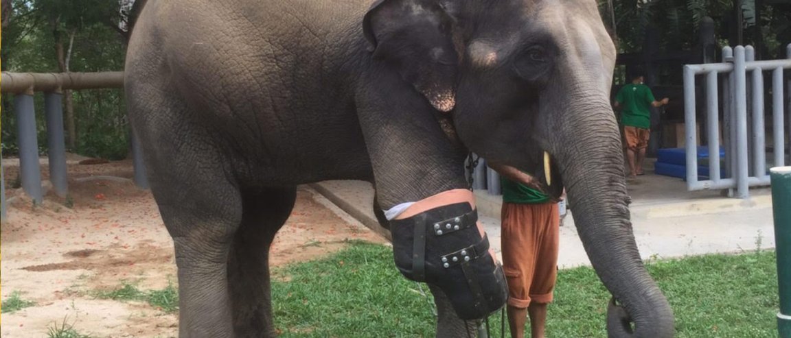 Mosha, then two and a half years old, was spotted by Therdchai Jivacate, a surgeon who designs prosthetic legs for humans and other animals through the Friends of the Asian Elephant Foundation in Thailand.