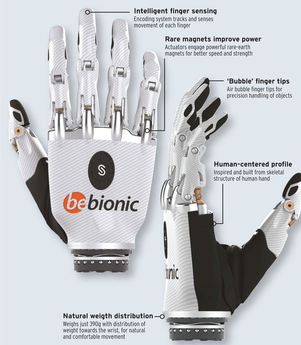 - Twenty-nine-year-old Nicky Ashwell, born with a partially developed right arm, was outfitted with Steeper’s bebionic small hand. The cutting-edge robotic hand has 337 mechanical parts, magnets for improved speed and strength, and bubble fingertips for precision in handling objects.
