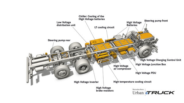 The German company Daimler revealed its Mercedes-Benz Urban eTruck yesterday in Stuttgart. It is an all-electric truck with a total weight capacity of 26 tonnes (29 US tons), making it the first clean energy truck of this size.