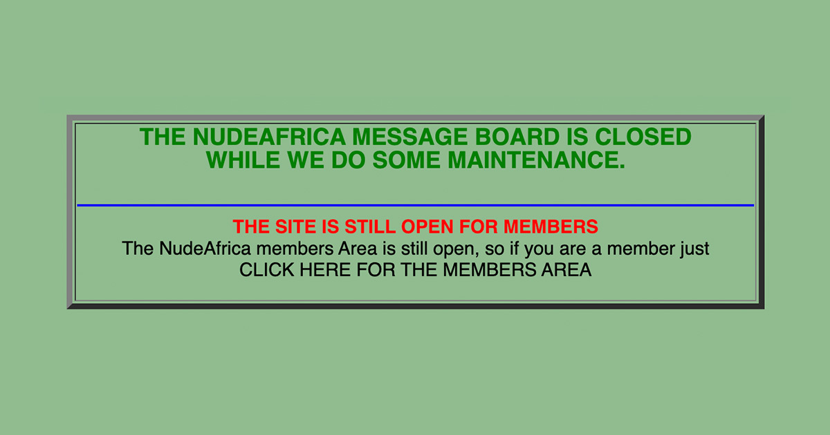 When one goes to NudeAfrica.com at press time — and we should note that the very Web 1.0-esque site is also extremely not safe for work (NSFW) and features pornographic images, given that it’s a porn site — they’re hit with a message saying the board is “closed while we do some maintenance.”