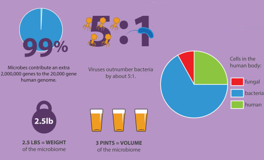 The bottom line is that the human body hosts a huge number of microbes of many different kinds. These microbes play a role in many fundamental life processes. The collection of microbes that constitute the microbiome is not random; the human microbiome is made up of a particular set of microbes that complement each other and the human host. Systematic study of the human microbiome is a very young science and scientists are just beginning to address the questions of what constitutes a normal microbiome.