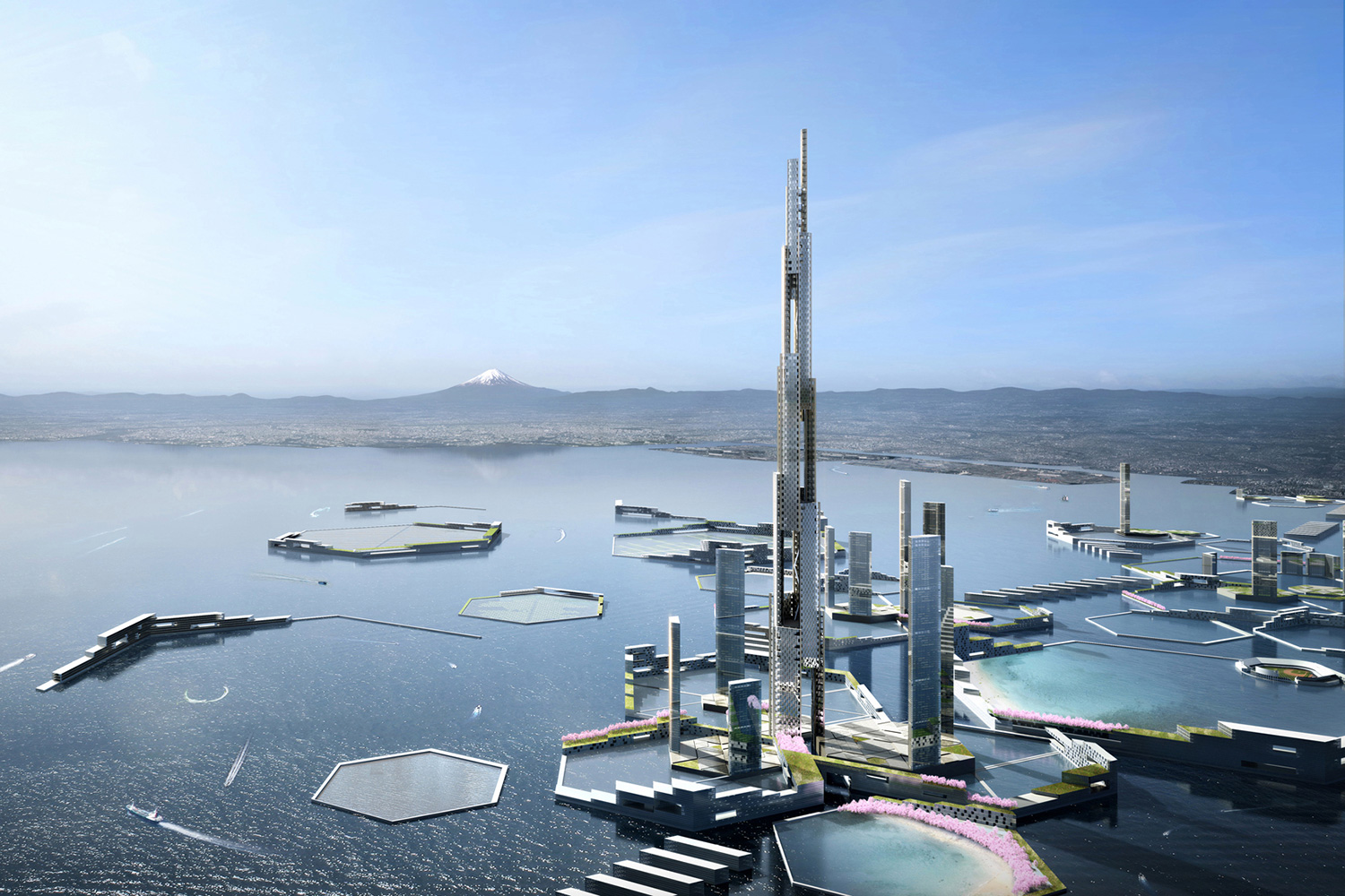 If the plans are given the go signal, this skyscraper will have hexagonal man-made islands around it. These islands will protect Tokyo from flooding and act as foundation for homes for around half a million people.