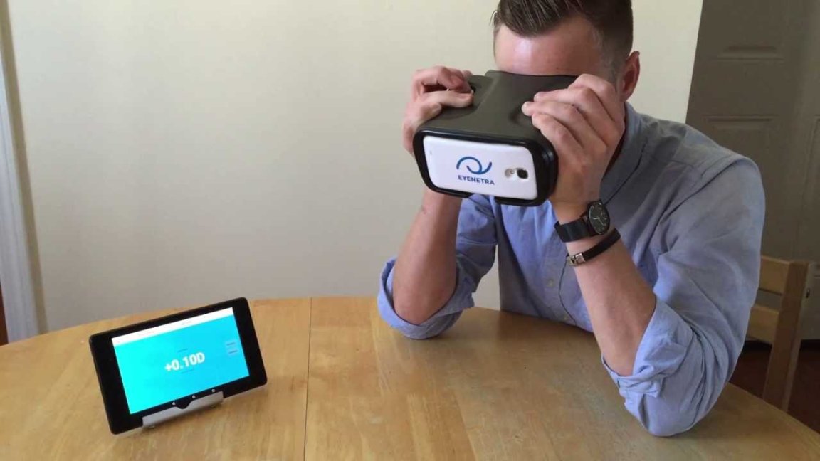 MIT spinout EyeNetra has launched the device Netra, a plastic binocular-like headset that serves as a mobile eye-test. A smartphone is attached on the front of the headset, and the user will see patterns which they are then required to align using a dial and a button to lock it in place. After eight interactions, the app can determine the difference between what the user sees as “aligned” and how the patterns are actually aligned on the screen. Astigmatism and refractive errors can be determined by this, while the app displays the details needed for prescription glasses like axis of astigmatism, pupillary distance, and refractive powers.