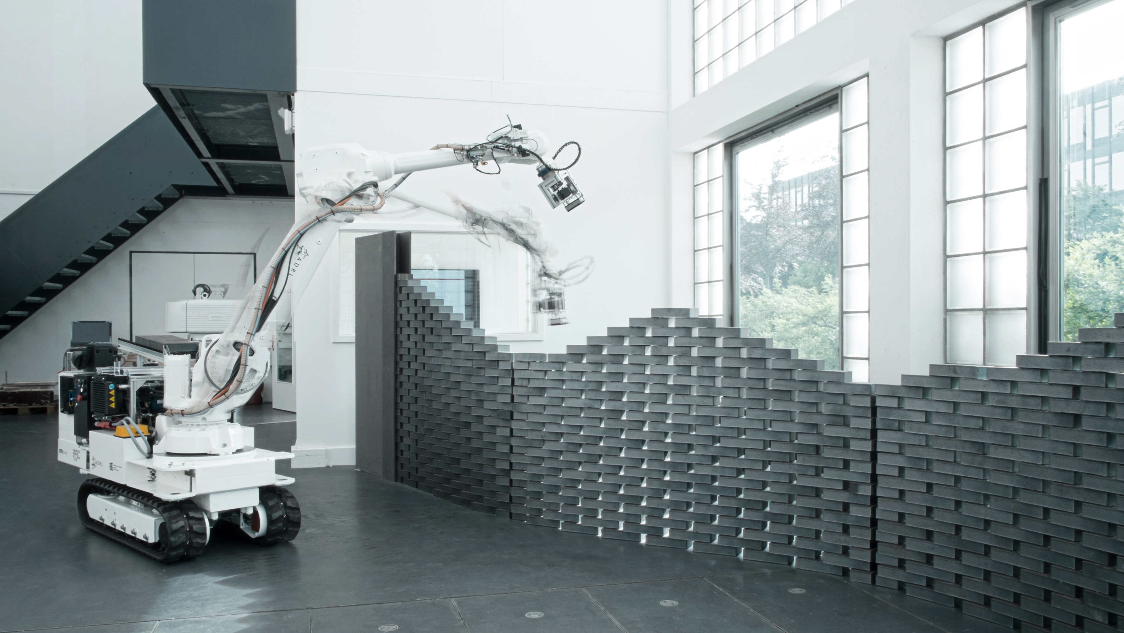 The IF was designed at the Swiss National Center of Competence in Research (NCCR) Digital Fabrication where researchers are cooking up other things for the IF. The engineers are making programs that would allow material assemblies with unpredictable geometry, like measuring rubble in order to determine how it can be fit together to create a standing structure. There’s also the Project “Mesh Mould,” which intends to combine two of the most labor and cost intensive aspects of concrete construction (the formwork and the reinforcement) into one single robotically fabricated construction system. In the short term, the researchers at the NCCR imagine that mobile robots will be collaborating with their human counterparts in order to get the best of both worlds.