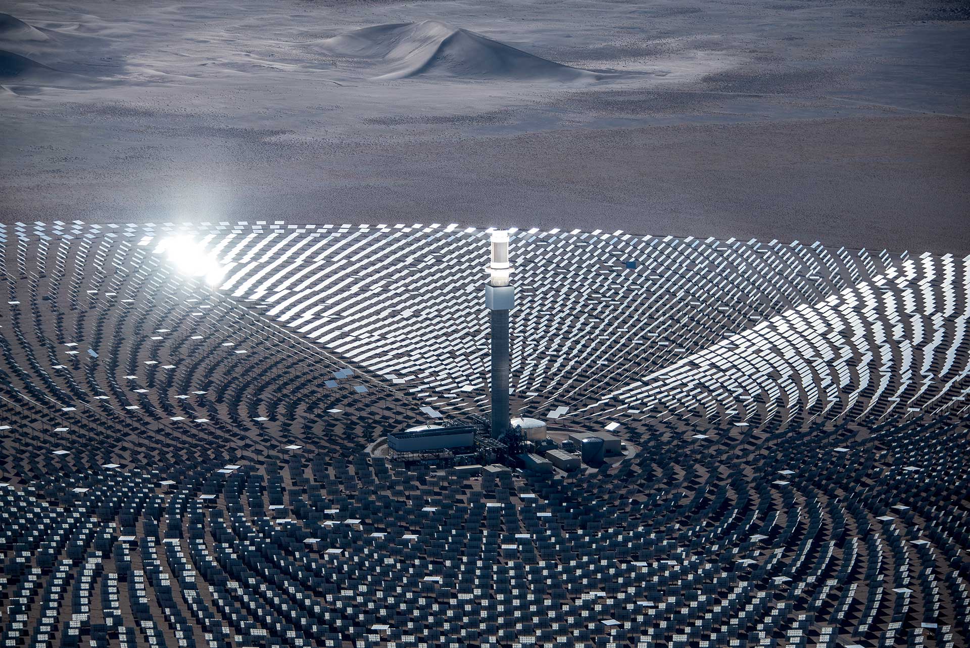 You see, unlike solar and wind power, which can reduce the need for fossil fuel energy when the sun’s out or when it’s windy, facilities that utilize molten salt can operate at any time of day and store energy for up to 10 hours. This form of power comes about quite simply: sunshine concentrated onto a tower by a field of mirrors heats molten salt within the tower to over 1,000 degrees Farenheit, which can then be used to generate steam and turn a turbine.