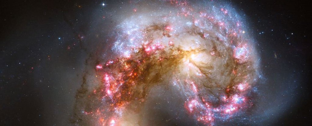 About 1.8 billion light-years away in a galaxy called IRAS 20100-4156, astrophysicists have recently discovered that a monster black hole is forming from the collision of three other spiral galaxies.