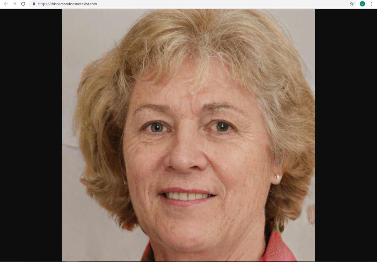 “Oh,” I said out loud. I refreshed the page and the woman was gone, replaced by an equally uncanny, AI-generated image of a person — and absolutely zero explanation. (If you’re having a hard time spotting the errors, look at her teeth.)