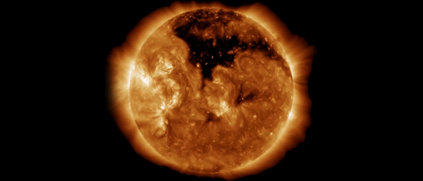 “A coronal hole is a place where where the Sun’s magnetic field opens out into interplanetary space, allowing hot material from the corona to speed outward. As a result, these areas have very little hot plasma compared to their hotter, brighter surroundings. So they appear much darker.”