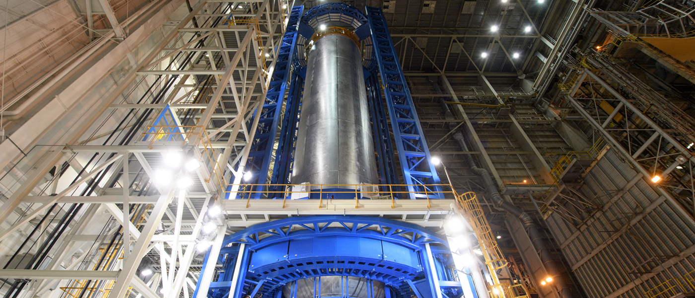 To that end, the huge rocket is being built piece by piece at NASA’s Michoud Assembly Facility in New Orleans — and the backbone of the Space Launch System is a real whopper. Joined together, the core stage of the rocket stands at 65 meters (212 feet), and can carry 2.3 million pounds of fuel for four RS-25 engines. Welding just wrapped up on the largest part of the core, a 40 meter (130 foot) tall liquid hydrogen tank.