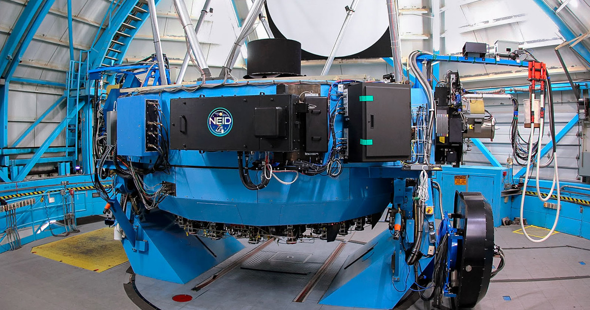 NEID doesn’t measure mass directly. Rather, it tracks how much an exoplanet’s gravitational force causes its host star to “wobble” while it orbits around.